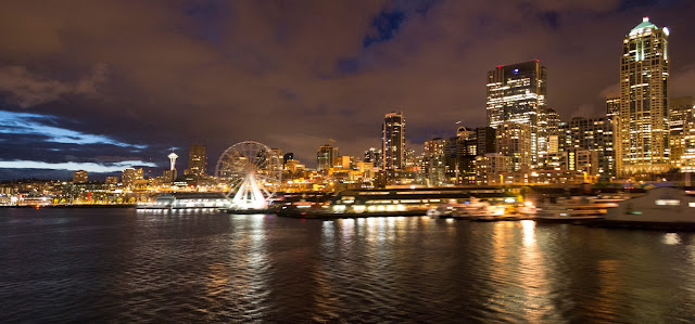 Seattle Waterfront By Nate McMaster | June 22, 2013 Seattle's waterfront at night. Taken from the Bainbridge Island.